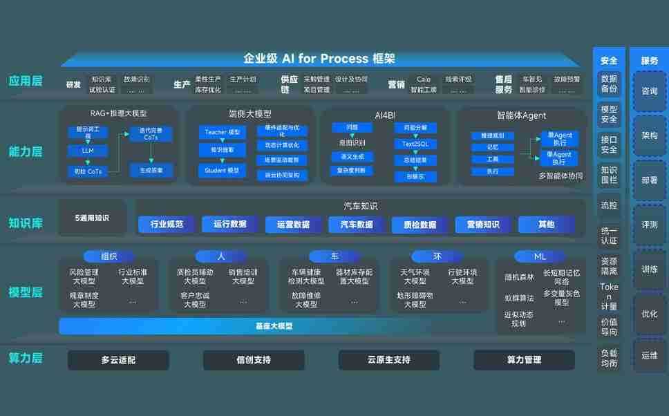 盛世集团问学智车解决方案是一套基于AI技术的汽车行业智能化系统,,,覆盖从底层算力到顶层AI应用的全栈方案。。。。方案由算力层、、、模型层和应用层组成:算力层,,,方案支持多种一体机配置,,,,具备云端灵活部署、、多云适配以及动态优化计算资源的能力;模型层,,盛世集团问学平台版提供了企业级AI应用一站式构建与管理平台,,支持基于后训练强化技术的汽车企业专属模型的训练、、、评测和运营;应用层,,盛世集团问学DeepSeek版提供包括超级员工、、、、智能招采、、智能营销、、智能客服、、AI for BI等一系列解决方案,,可助力汽车行业实现数字化转型,,,让管理更智能、、、、响应更敏捷。。。。